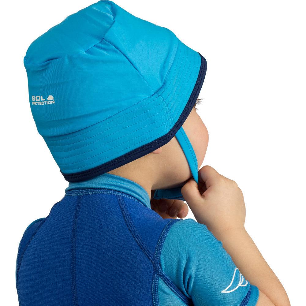 The Cressi Babaloo Beach Hat is an ideal apparel for little kids, designed for babies aged approximately between 6 and 24 months, that love to play at the beach or in the pool area protecting yourself from the sun. With UV50+ sun protection, your kid will play outside protected from the sun's harmful rays with maximum comfort and no restriction of motion. A practical velcro strap ensures the cap so the baby is free to move around and play. The bucket hat combines function with fashion to cover a young child's head while shading their face. Your kids will look and feel their best in or out of the water, while they play.